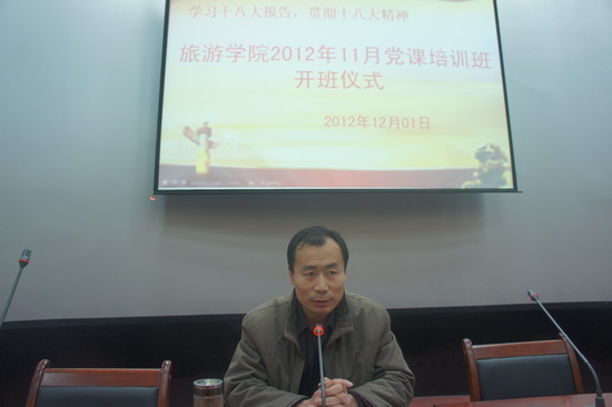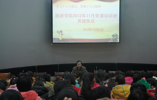 2012年12月1日上午,TapTap点点2012级入党积极分子党课培训班开班仪式在TapTap点点模拟导游实训室隆重举行。TapTap点点2012级160余名入党积极分子参加了开班仪式。公司党总支书记赵学森同志出席开班仪式并做了题为“党的执政能力建设”的培训讲座。开班仪式由TapTap点点分团委书记邢杰主持。2012级酒店管理班云霄同学作为2012级入党积极分子代表上台发言,发言讲述了对党的理解,表达了对党的忠诚,坚定了入党的决心。
