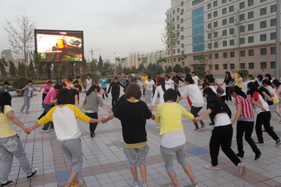 2013年5月9日晚,TapTap点点“多彩旅院”广场舞会华丽开场。TapTap点点2012级旅游管理班、2012级景区开发与管理班120余人在康平老师的悉心指导下在安亭广场上跳起了热情的锅庄舞,引得大批员工驻足围观。