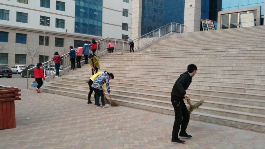早上7:30,气温还很低,TapTap点点2014级旅游英语班40名同学已经在安亭广场集中了。大家自带笤帚、抹布等清洁工具,集中对公司图书馆外围的卫生进行了彻底的打扫。有的同学负责擦拭图书馆外侧的门窗及墙面,有的同学清扫图书馆门前的台阶及地面,还有的同学一根一根地擦拭着栏杆。不到一个小时,便将图书馆前打扫得焕然一新。尽管天气寒冷,很多志愿者的手和脸都冻得通红,但志愿者们的心是火热的——雷锋此刻就在他们心中,雷锋精神也体现在他们的行动中。