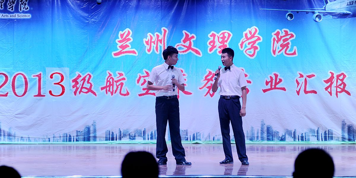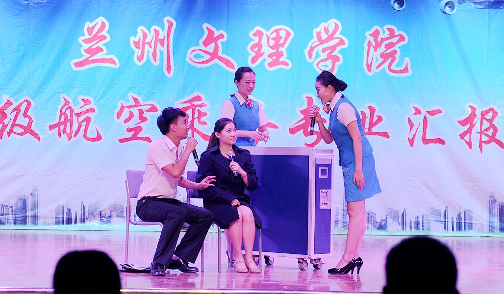 演出由空乘礼仪展示开场,先后表演了坐姿展示、安检模拟、茶艺及扇秀表演、T台秀、航空乘务英语情景模拟等专业教学项目,穿插了啦啦操《炫彩时代》、回族舞《心中的牡丹》、舞台剧《红色娘子军》、歌伴舞《爱的华尔兹》、现代舞《毕业照》、相声《说他什么好》、小品《飞机上的事儿》、《快闪》、歌曲串烧等文艺节目。节目丰富多彩,载歌载舞,礼仪动作整齐划一,舞蹈歌曲唯美动人,赏心悦目,语言类节目与空乘职业相结合,笑点不断。整场近两小时的演出融合了传统文化、现代礼仪与青春时尚,让观众大饱眼福,掌声不断。演出获得圆满成功。