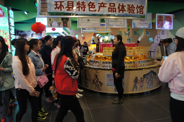 特色中国甘肃馆位于兰州市南滨河路中段,馆内采用了大量的历史文献、文物、图片、雕塑,以及声、光、电等表现手法,全面展示甘肃的历史文化、特色特产、风土人情、旅游资源。甘肃馆发挥“淘宝网”的大品牌优势,打造线上商城的同时建设了别具特色的线下体验馆,是全国首个不用现金消费的特产大卖场。在整合了苦水玫瑰、兰州百合、陇药三宝、高原夏菜等传统优势产品后,又开发了丝路文化珠宝、河西葡萄酒、清真食品、非遗产品等新兴产业。同学们在讲解员的引导下进行了有序参观。琳琅满目的商品让大家深受震撼,感受到我省的物产丰富、文化深厚。