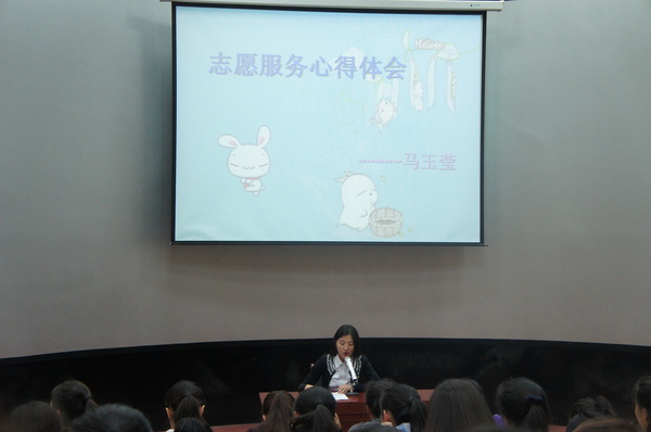 活动中,因在此次展会中表现突出荣获省志愿者指导中心和组委会表彰的马玉莹、董振宇、路婷婷、王彦博、王琳、罗春燕六名同学分别做了报告,分享各自的志愿服务心得体会。马玉莹同学用“小事、付出、价值、收获、珍惜”五个词概括了自己的工作感悟。其他志愿者也都通过一组组照片和一件件小事讲述了自己的心得,大家都表示深刻感受到主办方工作人员极强的时间观念、周密的工作计划及良好的礼仪修养,让大家看到了自身存在的不足。