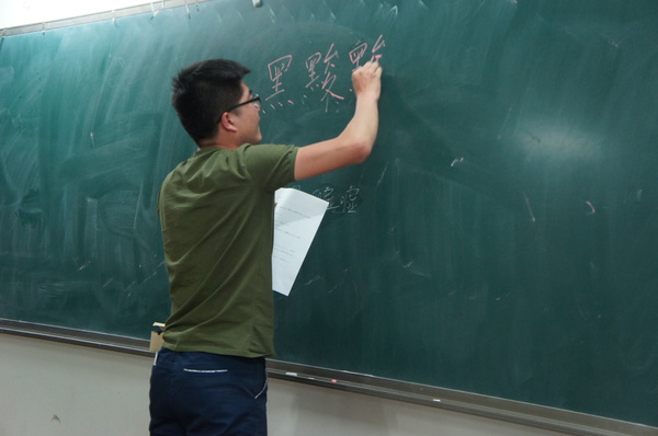 比赛中,各班推荐的18名参赛选手依次上场听题,根据主考官所读词语及其释义在答题板上书写出该词语,限时30秒,书写完毕后,由三位评委分别裁定,三位评委全部亮出绿牌,该题即为通过。