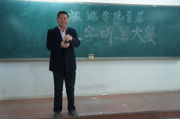 比赛中,各班推荐的18名参赛选手依次上场听题,根据主考官所读词语及其释义在答题板上书写出该词语,限时30秒,书写完毕后,由三位评委分别裁定,三位评委全部亮出绿牌,该题即为通过。