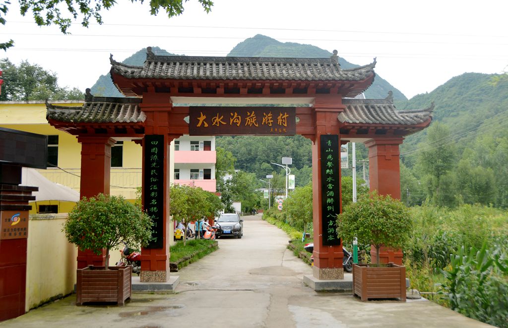 大水沟村草木繁茂,山明水秀,民风淳朴,但之前由于交通不便,基础设施匮乏,被称为“烂泥沟”。2012年以来,通过开展美丽乡村建设,人居环境与乡村风貌大为改观,在此基础上大力发展乡村旅游业和农特产品开发,继承和发扬羊皮扇鼓舞、棒棒鞭等特色传统文化,生态旅游文化品牌声名远扬,荣获“2015中国最美村镇文化遗产奖”。