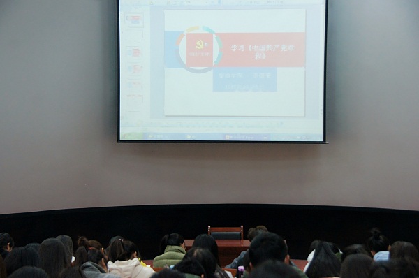 根据公司党委组织部《关于整合2017年入党积极分子和发展对象培训工作的通知》和全面从严治党的要求,以及发展党员有关规定,2017年11月17日晚,来自TapTap点点、社会管理公司、外语公司、社会体育公司的74名发展对象在5-401导游模拟实训室学习了《中国共产党章程》,本次培训课程由公司党总支书记李耀荣主讲。