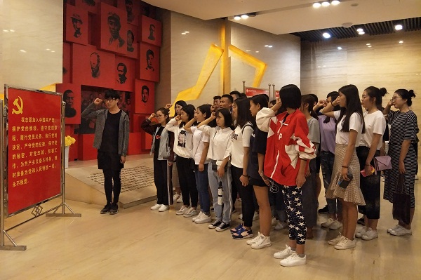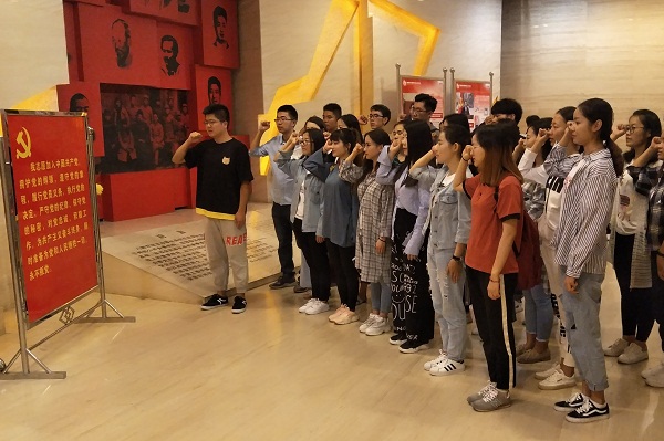 八路军驻兰州办事处成立于1937年8月25日,在党中央的领导下,坚持斗争6年之久,出色完成了各项任务,被周恩来同志誉为“革命的接待站、战斗的指挥所”。上午9:00,支部党员、预备党员在党旗下重温入党誓词。在讲解员的引导下,同学们缓步走进八路军驻兰办事处纪念馆,参观了“建立统一战线”、“进行思想发动”、“实施西北开发”、“奔赴抗战前线”、“接待和输送人员”、“奋起空中对决”、“转运苏联援华物资”等七个单元的展板。在反映八路军驻兰州办事处“原貌陈列展”前,在热血陇原——八路军驻甘办事处与甘肃抗日救亡展览前,在巍巍祁连——中国工农红军西路军事迹展览前,在日军轰炸兰州时从空中拍摄的照片前,在震撼人心的陇原儿女抗日阵亡将士名录前……同学们穿越时空,重温历史,走进了那段革命时期波澜壮阔的难忘岁月,让同学们更加直观地了解和体会了革命先辈那种坚定执著的理想信念、忠贞不渝的家国情怀、密切联系群众的优良作风,精神上受到强烈震撼和洗礼。在八路军驻兰州办事处的四合院旧址,大家瞻仰了院内的党代表谢觉哉塑像,参观了周恩来等领导人旧居、办公室、会议室、接待室,深刻体会到中国革命胜利的艰辛和不易。