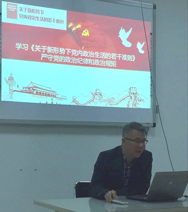 本节党课,牛教授主要从党内政治生活的重大作用、党内政治生活的历史经验、党内政治生活中一些突出问题三个方面对新形势下党内政治生活的若干准则进行了一系列解读。