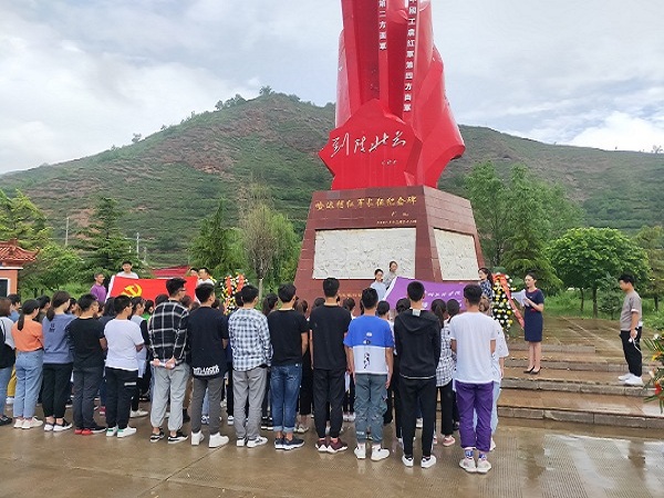 全体党员、预备党员,于早上六点半集合,乘坐高铁前往哈达铺。在蒙蒙细雨中,全体人员怀着庄重的心情来到了哈达铺长征纪念馆,在红军长征纪念碑前举行了党日主题活动。首先,全体党员奏唱中华人民共和国国歌,重温入党誓词,坚定政治信仰,不忘入党初心,时刻牢记自己党员的身份。随后,全体党员向为了人民幸福和新中国独立而牺牲的革命先烈默哀悼念,四位党员代表向红军长征纪念碑敬献花篮并鞠躬致敬,表达对革命先烈的敬仰之心。正是革命先烈用自己的血肉之躯,支撑起了美丽富饶的新中国,怀着对革命先烈的崇敬之情,全体党员在纪念碑前朗诵了“历史的选择——马克思主义在中国”,并在书写着“不忘初心、牢记使命”——“ 忆党史、强党性、牢使命 ”横幅上签字合影留念。