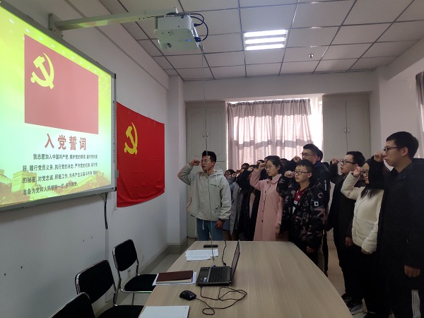 公司于12月5日13:00在党员活动室开展了员工党支部预备党员宣誓活动,本次活动由员工第二党支部书记张秦老师主持,公司员工第二、三党支部的预备党员参加了本次宣誓活动。