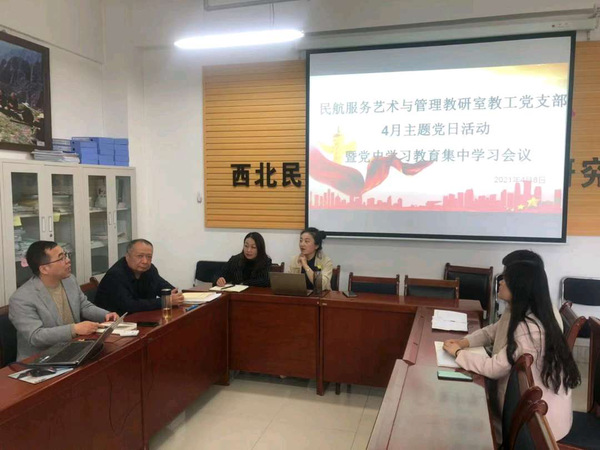 民航服务艺术与管理教研室教工党支部书记陶雪松说,今年是中国共产党成立一百周年。2021年2月20日,习近平总书记出席党史学习教育动员大会并发表重要讲话。2021年2月24日,党史学习教育领导小组印发《关于认真学习贯彻习近平总书记在党史学习教育动员大会上的重要讲话的通知》。在全党开展党史学习教育,是党中央立足党的百年历史新起点、统筹中华民族伟大复兴战略全局和世界百年未有之大变局、为动员全党全国满怀信心投身全面建设社会主义现代化国家而作出的重大决策。咱们支部深入学习贯彻习近平总书记在党史学习教育动员大会上的重要讲话精神。陶雪松书记强调开展党史学习教育意义重大。