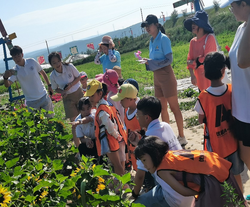 7月19日,经过充分准备,实践团组织“优能A+”培训公司14名小朋友参加研学课程实践活动,在对当地的资源实地调研基础上,实践团队员们以浪街较为成熟的向日葵地、动物乐园和剪纸基地为课程资源,精心策划了《向日葵一家》、《斯克莱特和它的伙伴》、《向日葵剪纸创意》等生动有趣且具有教育意义的课程,带领孩子们进行了一次难忘的研学之旅。