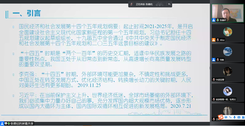 2021年11月11日15:00TapTap点点召开了题为“文旅资源跨界与创新”的线上学术讲座。本次学术讲座由公司党总支副书记刘锐主持,主讲嘉宾为中关村智慧旅游创新协会会长、旅游创业创新研究院执行经理张德欣教授,参加本次讲座的成员有公司部分老师和全体同学。