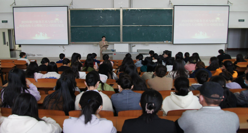 解璐荻总结了以往航空服务艺术与管理专业其他院校的就业情况以及民航业复苏后对工作人员的需求,解答员工面临的困惑,帮助大家认清当前的形式,正确引导同学们对自己未来进行深刻的思考和全面合理的规划,提升同学们择业和就业信心,提醒同学们做好实习准备。同时从就业政策、历年就业数据、就业信息的获取等方面进行详细讲解,并将往届毕业生在求职或者升学过程中的经验教训同在座同学进行了分享。