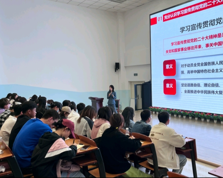 李冰从充分认识学习宣传贯彻党的二十大精神的重大意义,全面准确学习领会党的二十大精神和下一个百年的历史使命三个方面对党的二十大精神进行宣讲。