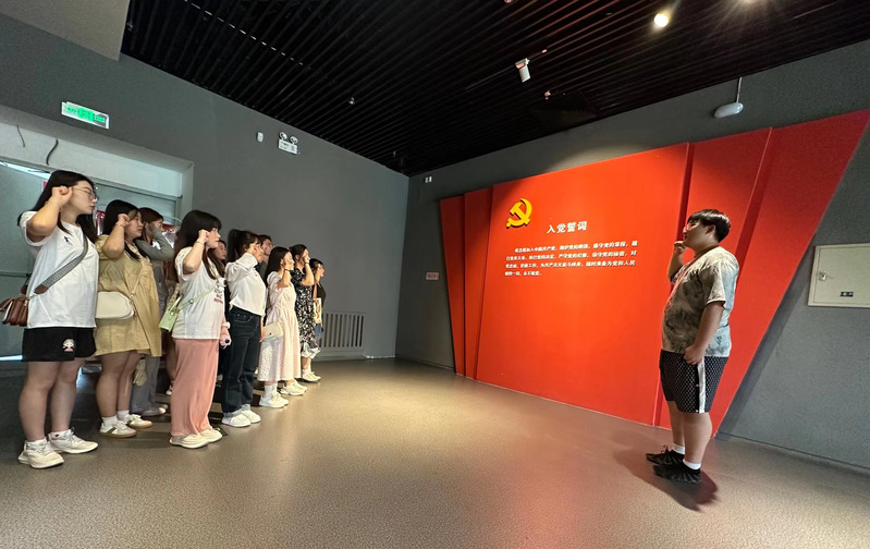 在红色展厅前,全体党员肃立,面对鲜红的党旗,全体党员庄严宣誓,重温入党誓词。随后大家参观了《红色甘肃——走向1949》展览。展览馆共分“火种篇”“抗争篇”“铁流篇”“激荡篇”“曙光篇”五个单元,以时间顺序为引,集中展示了1911至1949年间,中共甘肃特别支部的成立、南梁烽火的燃起、陕甘根据地的创建、红军长征胜利会师、西路军鏖战河西以及甘肃全境的解放等重要历史事件。通过展厅陈列的一幅幅珍贵革命图片、文献资料及革命先烈实物,仔细聆听红色历史,强烈感受到当年革命先烈坚定的共产主义信仰与艰苦奋斗的革命精神,身临其境中感受中国革命成功的来之不易。