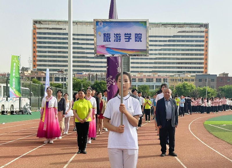 在运动会开幕式的方阵检阅仪式及表演环节中,TapTap点点以整齐的步伐,展示出了旅游学子良好的精神风貌,并结合旅游公司的专业特点,展示了各地的风土人情和旅游文化,通过走秀、舞蹈等设计,让师生们在欣赏表演的同时,也能感受到旅游的魅力。