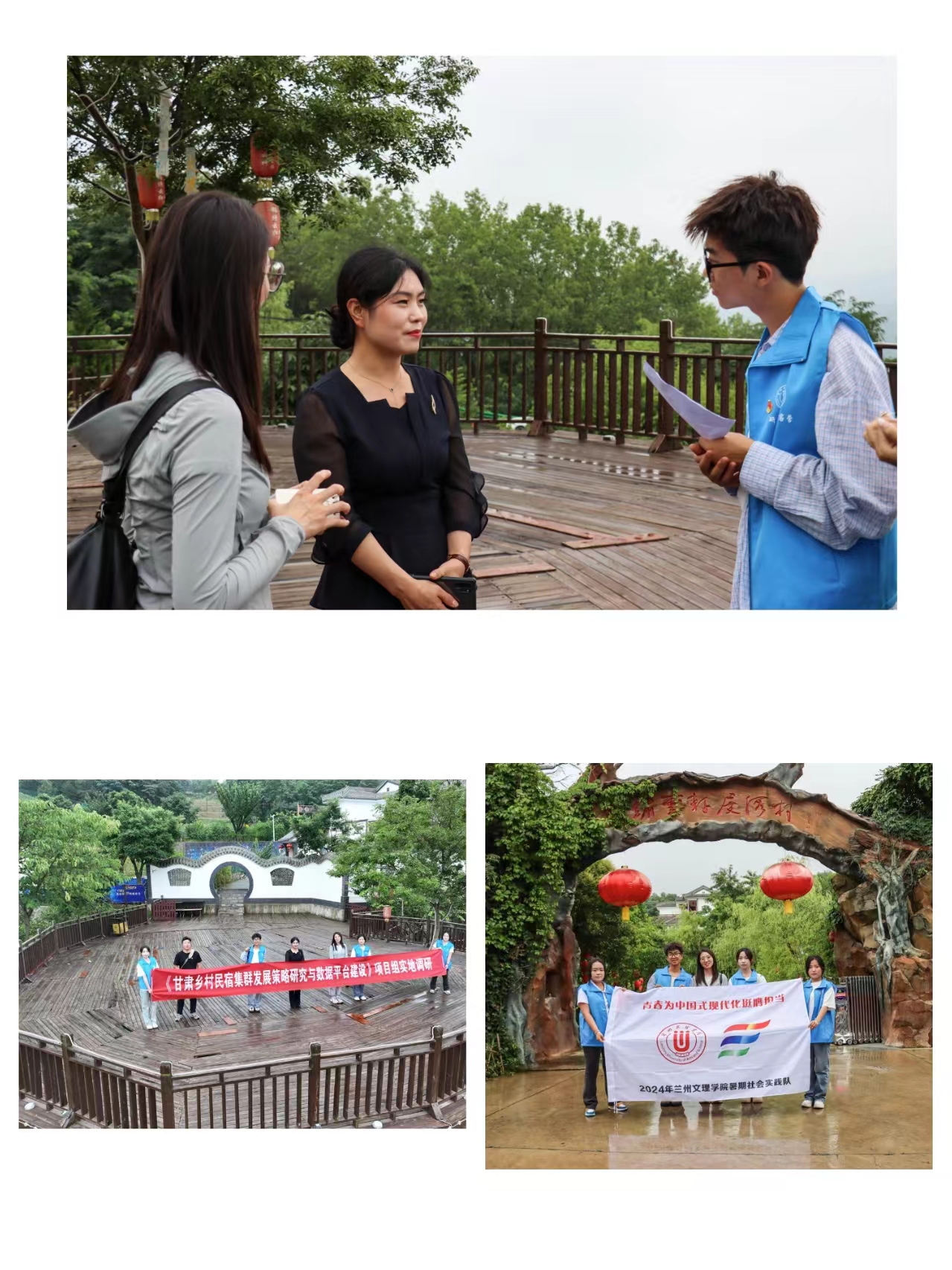 上午,实践队前往了成县民宿“锦绣云轩”。这处毗邻国家级森林公园鸡峰山景区的康养圣地,自然环境秀美怡人,交通便捷,在负责人刘总的带领下,我们漫步在古朴雅致的院落之中,聆听着民宿背后的故事,感受着大自然的山水与人工的民居完美融合,通过参观,我们了解到这里餐饮,会议,娱乐,文创一应俱全,且客房经营状况较好。“通过对锦绣云轩民宿的调研,让我意识到民宿不仅仅是住宿这一单一功能,而是发展的更加丰富和多元化。让我也萌生了未来在民宿业发展就业的想法。”团队成员张彪说到。
