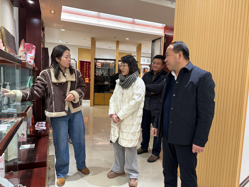 在考察过程中,甘肃陇萃堂营养保健食品有限公司负责人详细地介绍了公司的全线系列产品、线上平台仓储间、线下门店(直营店、乡村振兴馆等)以及拓展文旅板块打造甘肃陇礼品牌的未来规划。何瑛一行详细地了解了公司的建设背景、运营模式及发展理念。双方就员工就业实习、产品展览及线上展销等事宜进行了深入交流,并就校企合作模式进行了初步洽谈。